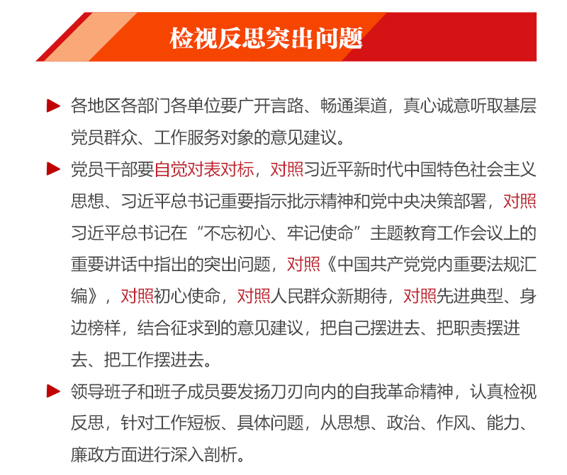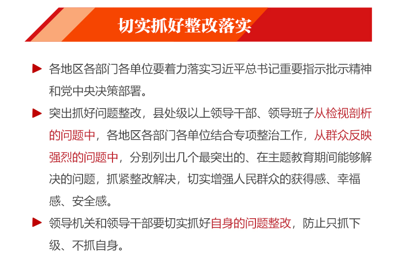 中央“不忘初心、牢记使命”主题教育领导小组近日印发《关于抓好第一批主题教育学习教育、调查研究、检视问题、整改落实工作的通知》。通知强调,要把学习教育、调查研究、检视问题、整改落实贯穿主题教育全过程。这四项重点措施如何推进,一起来看看!