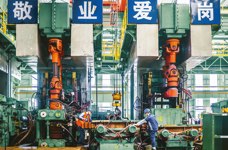 新冠肺炎疫情发生以来,各地区各部门充分发挥党的领导核心作用,统筹推进疫情防控和经济社会发展工作,奋力夺取“双胜利”。中国宝武马钢特钢公司在推动复工复产迈向稳产高产的同时,不断加大高端产品的开发力度,2020年上半年,重点产品风电能源用钢销量同比增长80%以上。图为2020年7月1日,该公司轧钢产线员工冒着高温对设备进行维护。 人民图片 罗继胜/摄