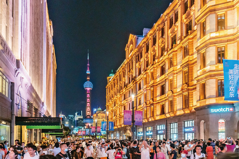 新冠肺炎疫情发生以来,我国统筹推进疫情防控和经济社会发展,取得显著成效。图为2020年9月12日晚,上海南京路步行街东拓段正式开街。 中新社发 王冈/摄