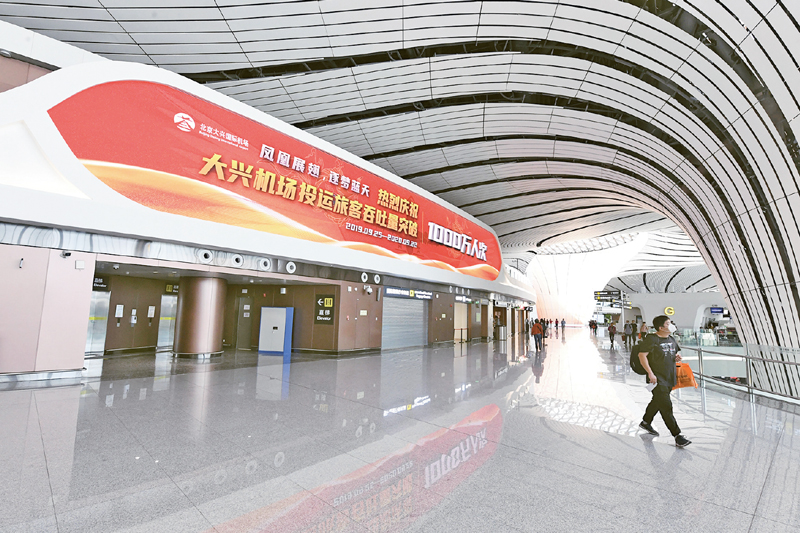 2019年9月25日,北京大兴国际机场投运仪式在北京举行,习近平总书记出席仪式,宣布机场正式投运并巡览航站楼。时隔一年,2020年9月22日,北京大兴国际机场迎来第1000万名旅客。图为22日当天拍摄的机场内景。 新华社记者 任超/摄